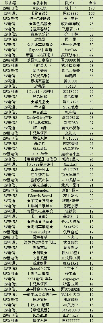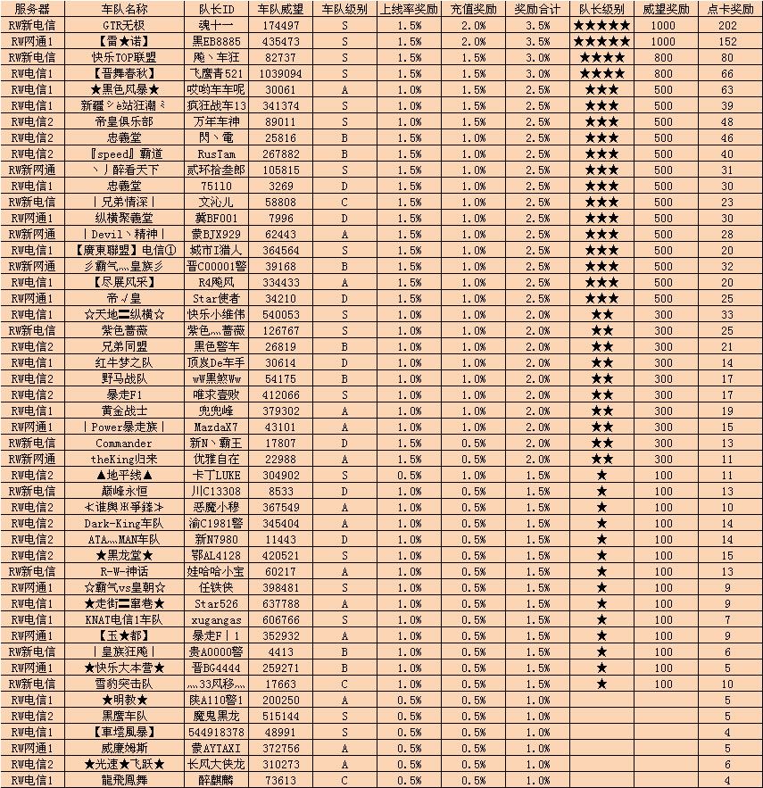 您的车队是否已经在这份激动人心的榜单中登场了呢?下月,这份喜悦是否同样属于您呢?希望大家能够更好的组织好车队的活动,获得我们更多的奖励!