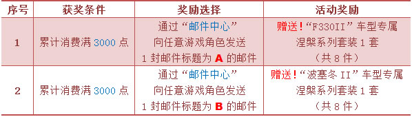 7. 同一通行证帐号下,如向任意游戏角色分别发送了标题为A、标题为B的邮件,将默认为通行证帐号颁发序号1获奖条件对应的活动奖励;