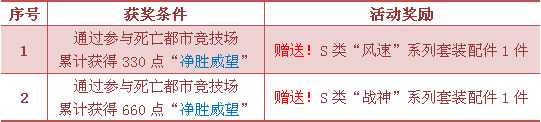 2. 当车队所获得的“死亡都市竞技场”团队积分累计满100时,相应车队将可获颁“死亡都市竞技场”车队徽章1枚(由车队队长负责分发);