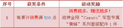 活动内容:活动期间,满足以下任意1项获奖条件,即可赢得1份相应的超值奖励;