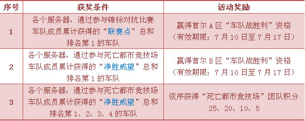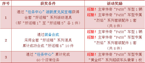 2. 序号1获奖条件,活动奖励将打入截至系统颁奖时相应游戏角色所在车队;
