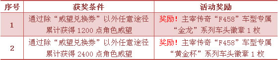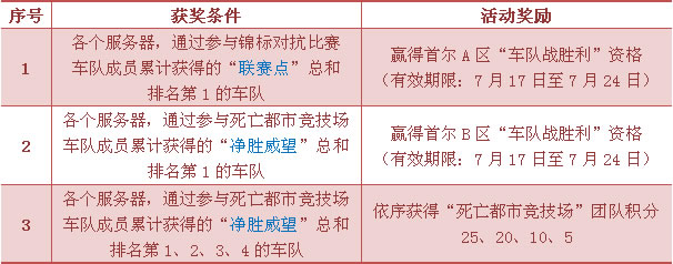 2. 当车队所获得的“死亡都市竞技场”团队积分累计满100时,相应车队将可获颁“死亡都市竞技场”车队徽章1枚(由车队队长负责分发);