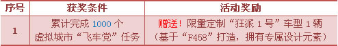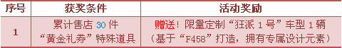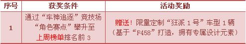 3. 序号1获奖条件,共有15个获奖名额,《飚车世界》每组服务器各拥有3个;