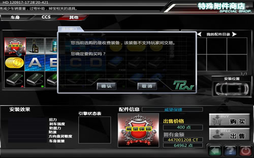 如图3所示:您必须将“威望保镖”装配在您的心爱座驾上,方可激活“威望保镖”特殊功能。