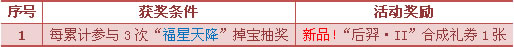 2. 单个通行证帐号下,不同游戏角色间,“福星天降”参与次数累加计算;