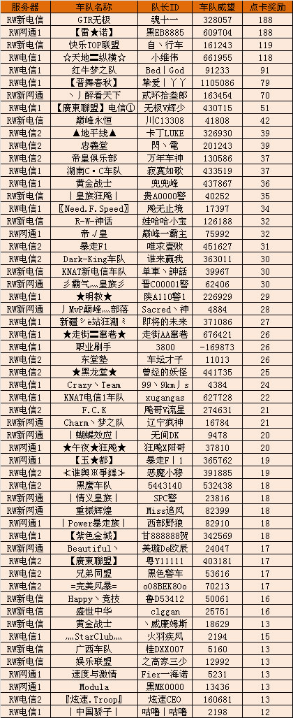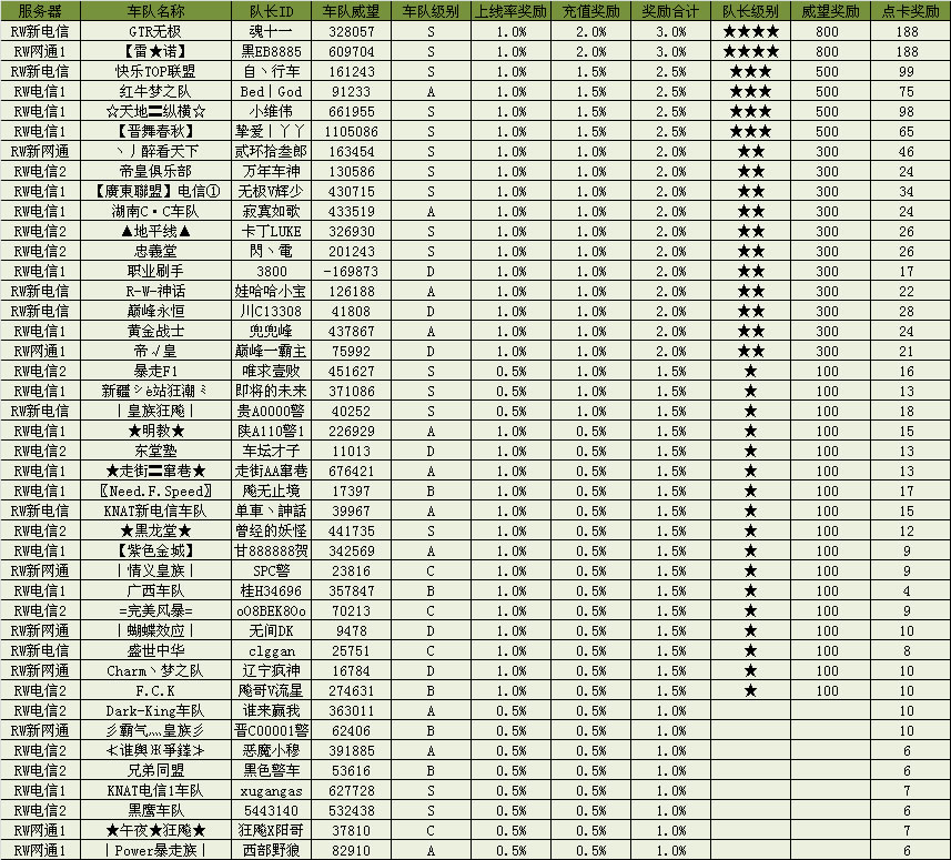 1. 点卡奖励还是按照相关规则:由获奖车队队长统一领取;