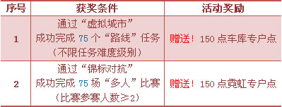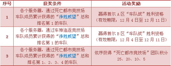 2. 当车队所获得的“死亡都市竞技场”团队积分累计满100时,相应车队将可获颁“死亡都市竞技场”车队徽章1枚(由车队队长负责分发);