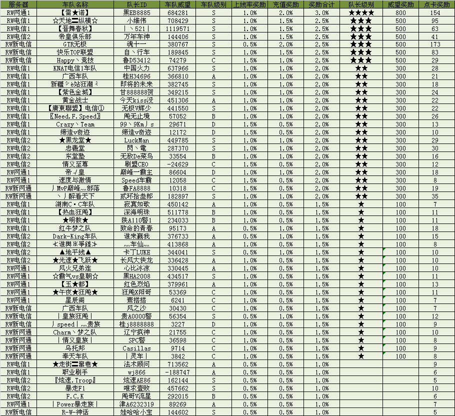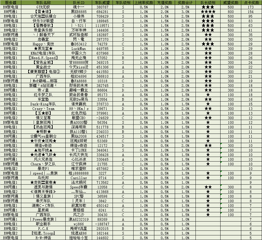 您的车队是否已经在这份激动人心的榜单中登场了呢?下月,这份喜悦是否同样属于您呢?希望大家能够更好的组织好车队的活动,获得我们更多的奖励!