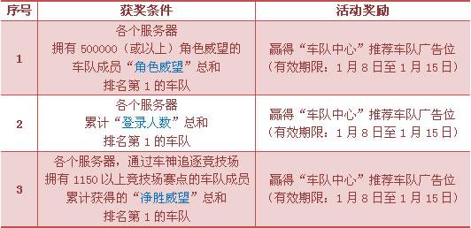 2. 单个服务器中单支车队,最多可对应1项获奖条件;