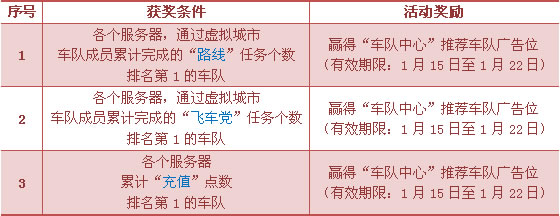 2. 单个服务器中单支车队,最多可对应1项获奖条件;