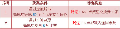 3. 序号1获奖条件中,单个“飞车党”任务需至少完成4个目的地并成功完成结算,方计为成功完成1个“飞车党”任务;
