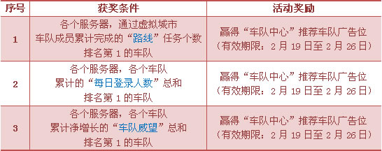2. 单个服务器中单支车队,最多可对应1项获奖条件;