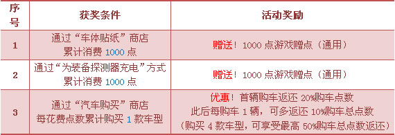 3. 序号3获奖条件,单个通行证帐号最高允许享受50%的购车总点数返还;