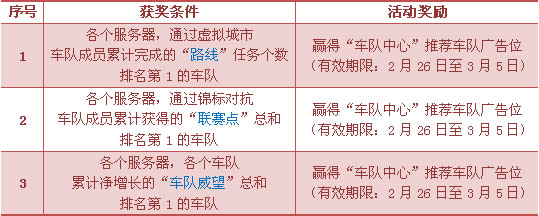 2. 单个服务器中单支车队,最多可对应1项获奖条件;