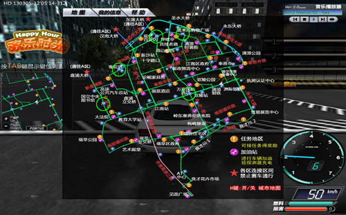 当“欢乐时光”开放后,假如您此时没有进行其他“虚拟城市”任务,那么您只需按下键盘快捷键“H”打开地图框,即可看到所在“虚拟城市”地图中已刷新出的若干个特殊“目标地点”。