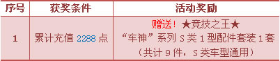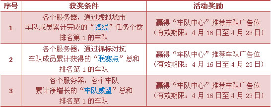 2. 单个服务器中单支车队,最多可对应1项获奖条件;
