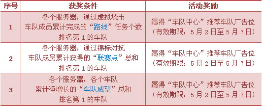 2. 单个服务器中单支车队,最多可对应1项获奖条件;