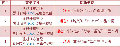 3. 活动期间,假如多支车队获得的“横冲直撞竞技场”冠军次数相同,则取车队威望最高的那支车队为获奖车队;车队威望数据截至活动数据统计时;