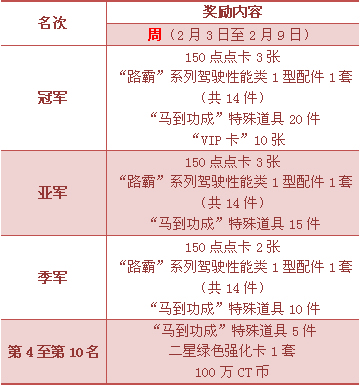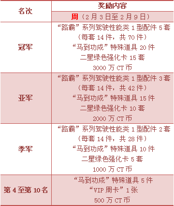 “赛事奖励”是“超级联赛”体系中不可或缺的重要组成。届时,官方将依据指定时间段内各个服务器、各个车队、参赛个人,于“超级联赛”中所获得的“联赛积分”数额进行排榜,以榜单排位授予车队或个人更多的奖励回报。奖励内容包括但不仅限于奖金、实物、游戏点卡、游戏道具等。