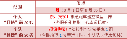 “赛事奖励”是“超级联赛”体系中不可或缺的重要组成。官方将依据指定时间段内各个服务器、各个车队、参赛个人,于“超级联赛”中所获得的“联赛积分”数额进行排榜,以榜单排位授予车队或个人更多的奖励回报。奖励内容包括但不仅限于奖金、实物、游戏点卡、游戏道具等。