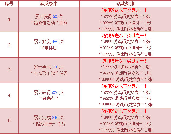 2. 单个通行证账号最多允许对应1项获奖条件,并获得1份相应的活动奖励;