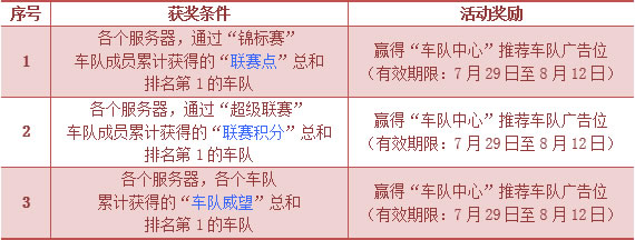 2. 单个服务器中单支车队,最多可对应1项获奖条件;