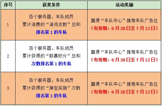 2. 本活动每组服务器共有3个获奖名额,单支车队最多仅可占据1个获奖名额;