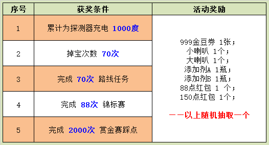 4. 本活动涉及的“掉宝奖励”次数统计,仅包括所有城市及锦标赛区域内,常规免费掉宝、探测器充电掉宝、福星天降以及“欢乐时光”欢乐探宝;