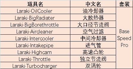 合成:Laraki・[装备名]_Base x3 +添加剂= Laraki・[装备名]_Speed x1