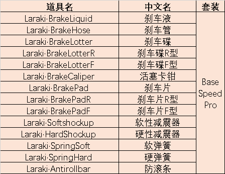 引擎:Laraki・Engine_Base、Laraki・Engine_Speed、Laraki・Engine_Pro
