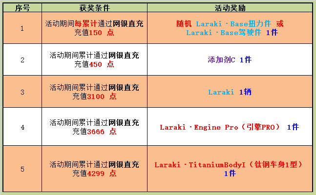 2. 活动统计为累计充值,序号1、2、3、4、5限定网银直充途径;