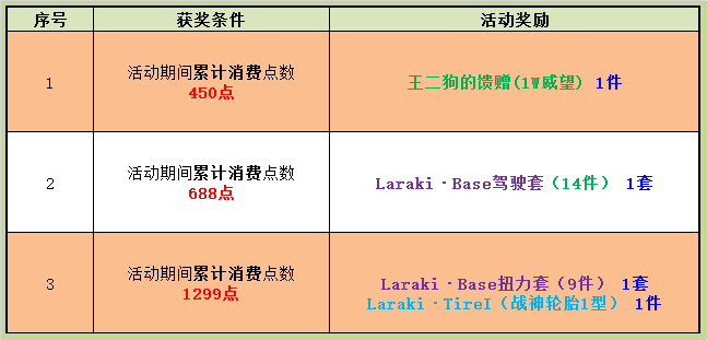 2. 活动统计为累计消费,不包含车队注资及寄售购买点数道具;