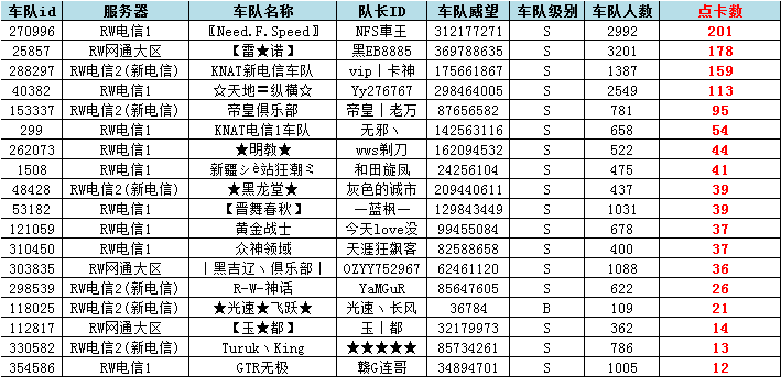 您的车队是否已经在这份激动人心的榜单中登场了呢?下月,这份喜悦是否同样属于您呢?希望大家能够更好的组织好车队的活动,获得我们更多的奖励!