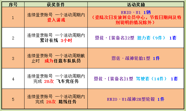 6. 序号3活动,活动截止时必需是某车队队员(活动期间加入,活动截止时退队不做计算);