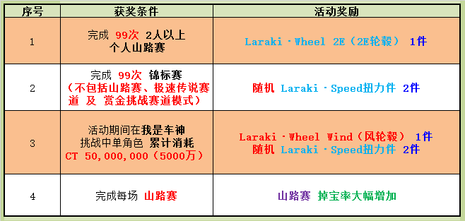 6. 序号3活动,我是车神统计以通行证下完成消耗最多的角色进行单独统计,只统计完成与否,不统计是否刷新记录,同一通行证多个角色完成只发放一份奖励;