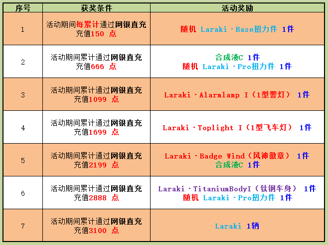 2. 活动统计为累计充值,序号1、2、3、4、5、6、7限定网银直充途径;