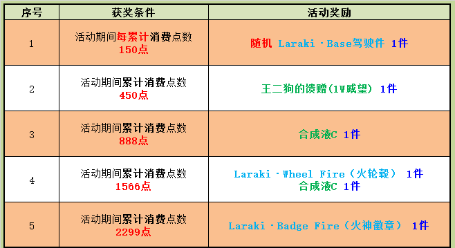 2. 活动统计为累计消费,不包含车队注资及寄售购买点数道具;