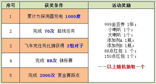 1. 序号1至5活动奖励由系统即时颁发,请在完成相应任务后于游戏中领取;