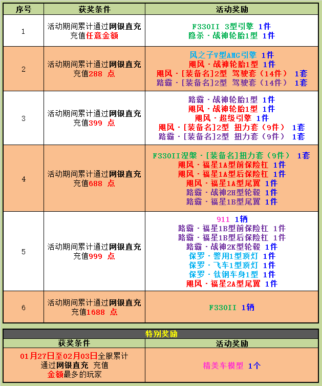 2. 活动统计为累计充值,序号1、2、3、4、5、6限定网银直充途径;