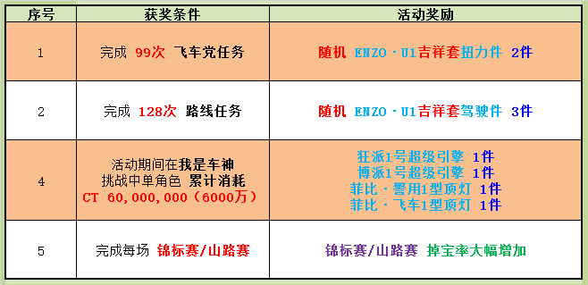 4. 序号1活动,需跑完飞车党任务跳出结算页面,未跑完或中途退出不做累计;