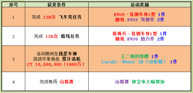 4. 序号1活动,需跑完飞车党任务跳出结算页面,未跑完或中途退出不做累计;