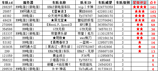 您的车队是否已经在这份激动人心的榜单中登场了呢?下月,这份喜悦是否同样属于您呢?希望大家能够更好的组织好车队的活动,获得我们更多的奖励!