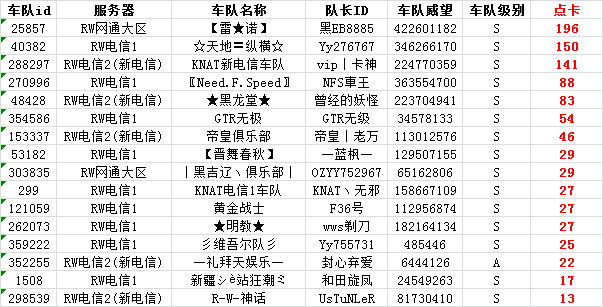 1.点卡奖励还是按照相关规则:由车队队长负责分配;
