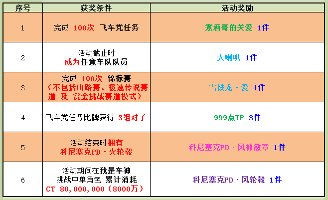 4. 序号1活动,需跑完飞车党任务跳出结算页面,未跑完或中途退出不做累计;