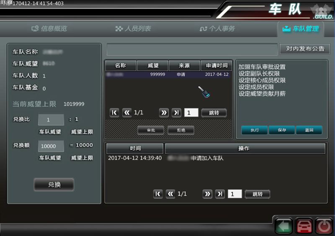 若车队设定:需审核,则新建角色自动申请指定车队,管理进行审核加入;