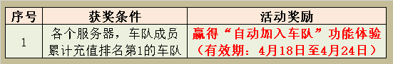 4、 若累计充值排名第1的车队放弃此奖励,奖励顺延给第2名的车队,以此类推;