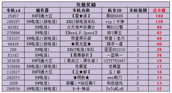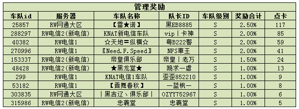 1.点卡奖励还是按照相关规则:由车队队长负责分配;