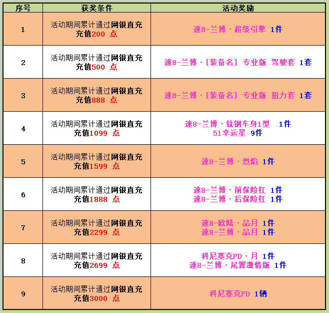 1. 序号1至5活动奖励由系统即时颁发,请在完成相应任务后于游戏中领取;