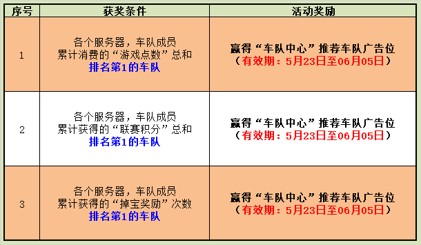 2. 本活动每组服务器共有3个获奖名额,单支车队最多仅可占据1个获奖名额;
