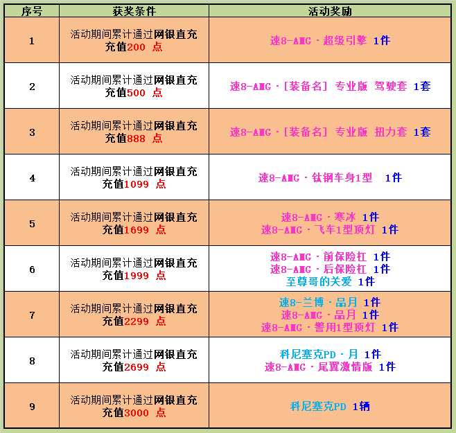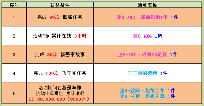 1. 序号1至5活动奖励由系统即时颁发,请在完成相应任务后于游戏中领取;